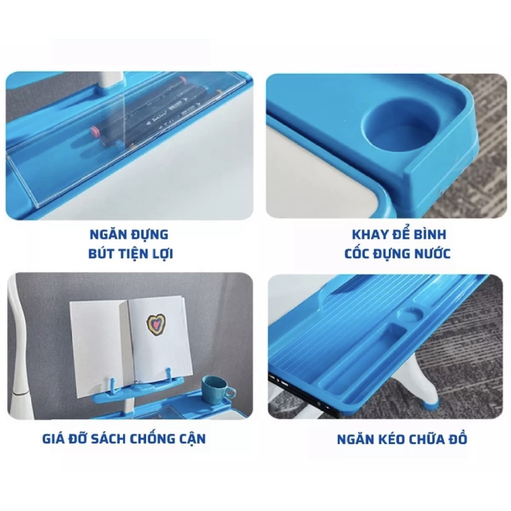 ✅Mặt bàn: Thiết kế phần đựng bút, tẩy,... tránh tình trạng rơi đồ dùng học tập khi điều chỉnh độ nghiêng mặt bàn..