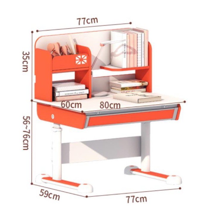✅ Chiều cao mặt bàn có thể điều chỉnh từ 56 – 76cm, mặt ghế 32 – 45 cm → Phù hợp cho trẻ ở nhiều độ tuổi khác nhau (3 – 18 tuổi)