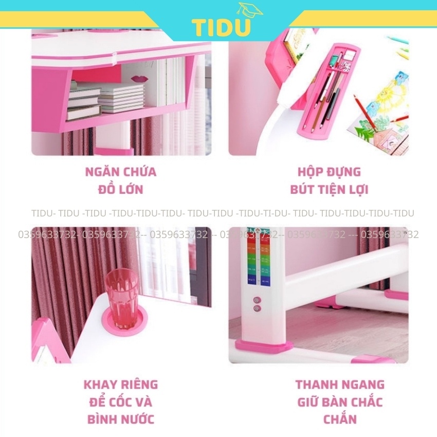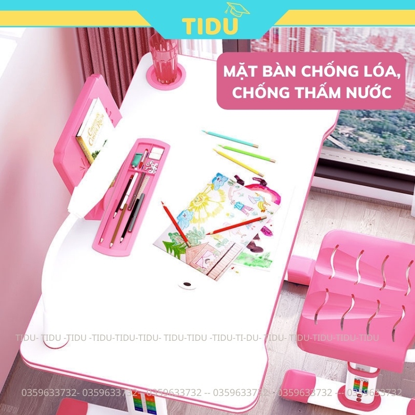 Bộ bàn học chống gù chống cận bàn học thông minh cho trẻ em Tidu Z04 kích thước 50x80cm rộng rãiBàn học chống gù Tidu z04 với tính năng đặc biệt được nghiên cứu chuyên sâu để hạn chế và giảm thiểu tối đa nguy cơ mắc các bệnh về học đường cho trẻ như cận thị, gù lưng, cong vẹo cột sống giúp trẻ có thể trạng khỏe mạnh và trí lực dồi dào trên con đường học vấn.