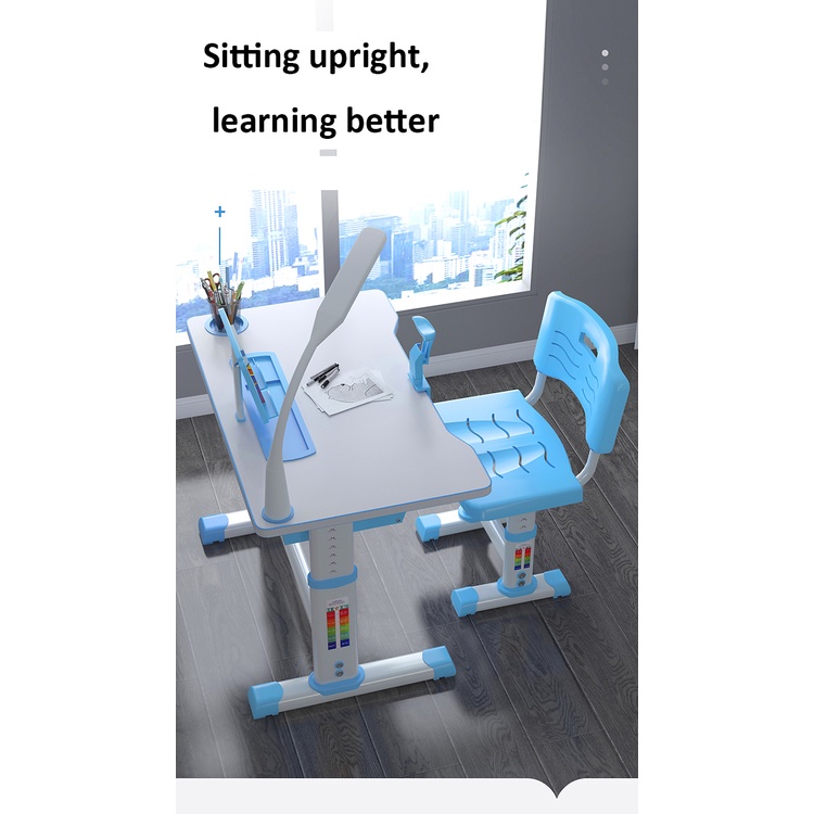 Bộ Bàn Ghế Học Sinh Chống Gù, Chống Cận, Bàn Học Thông Minh Cho Bé Tăng Chỉnh Chiều Cao Tuỳ Ý ( Kèm đèn và giá đỡ sách)