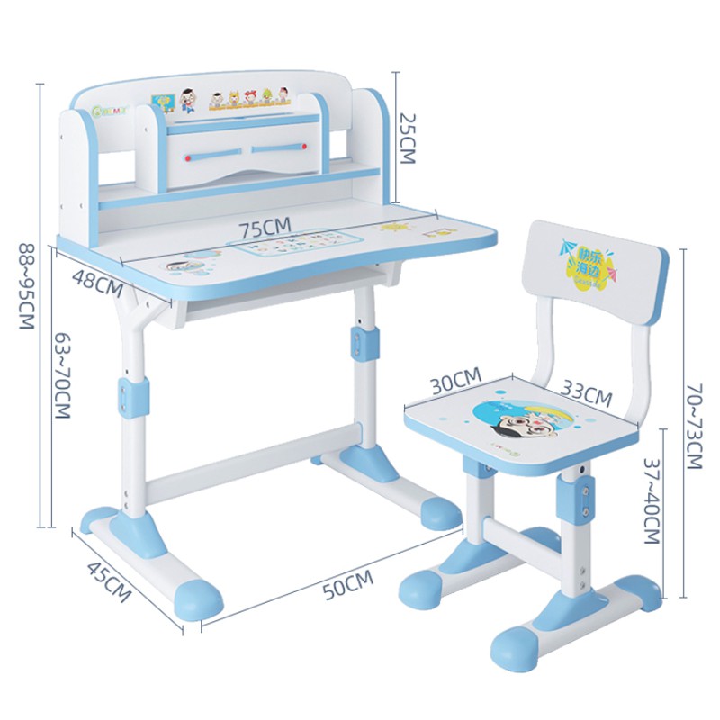 Bàn ghế học sinh có giá sách chống gù chống cận, bàn học thông minh kèm kệ sách phù hợp cho học sinh tiểu học"Kích thước mặt bàn: 75x48cm