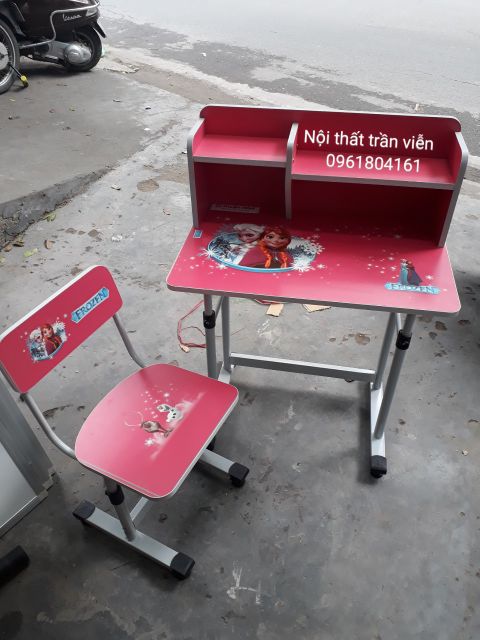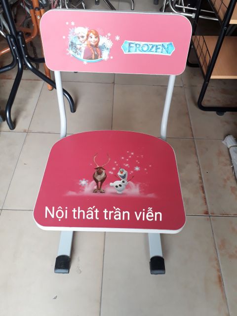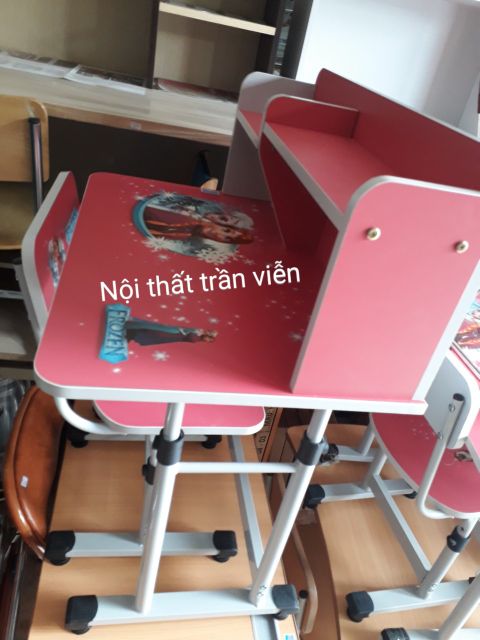 Mặt bàn, mặt ghế có dán decal nhân vật hoạt hình vui nhộn, được các bé ưa thích.