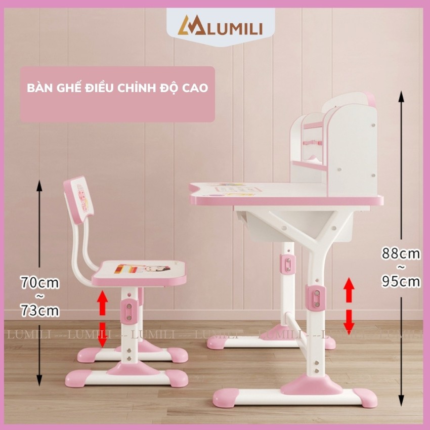 Nhà cửa & Đời sống > Nội thất > Bàn || bàn ghế học sinh Lumili D2 có giá sách chống gù chống cận, bàn học thông minh kèm kệ sách phù hợp cho học sinh tiểu họcCòn hàng