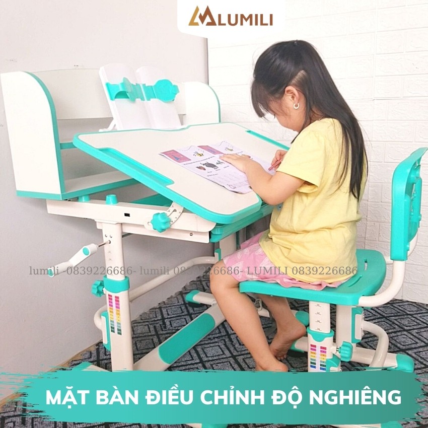 bàn ghế học sinh Lumili R08 có giá sách chống gù chống cận, bàn học thông minh kèm kệ sách phù hợp cho học sinh tiểu học
