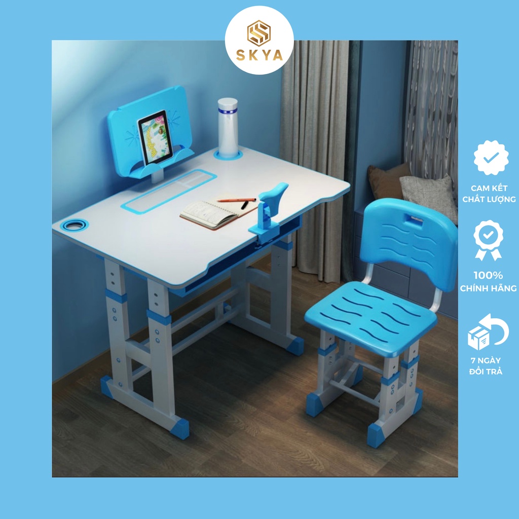 Nhà cửa & Đời sống > Nội thất > Bàn || Bộ bàn ghế học sinh SKYA K101 bàn học thông minh cho bé màu xanh chống gù chống cận có giá để sách và ipad tiện lợiCòn hàng