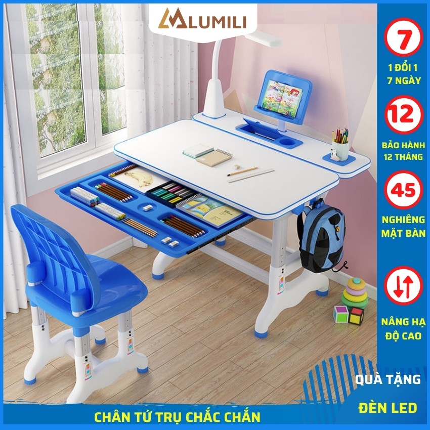 Nhà cửa & Đời sống > Nội thất > Bàn || bộ bàn ghế học sinh thông minh bàn học chống gù chống cận cho bé lumili có thể điều chỉnh độ caoCòn hàng