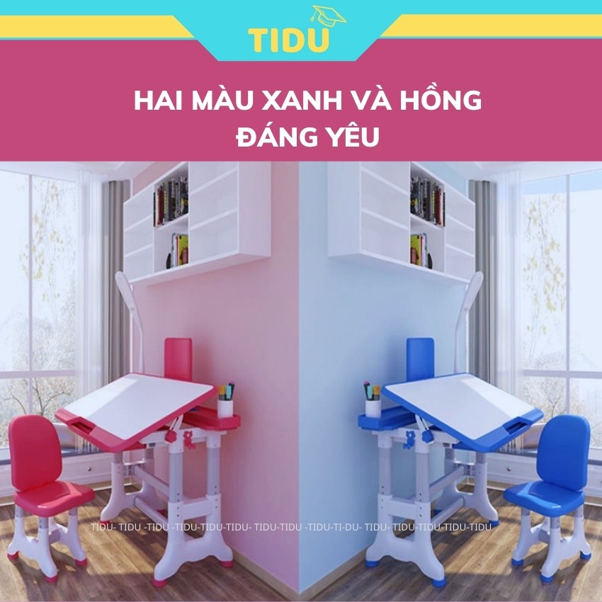 Bộ bàn ghế học sinh thông minh Tidu A02 bàn học chống gù chống cận cho trẻ em kt 50x70