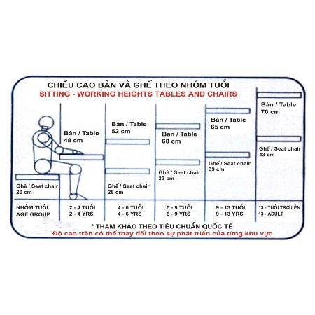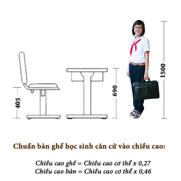 + Bộ bàn và ghế có sẵn đã được đo theo những tiêu chuẩn của Bộ Y tế, vì thế bạn nên sử dụng nguyên bộ, tránh tách rời bàn và ghế để ghép với những bộ có kích thước khác.