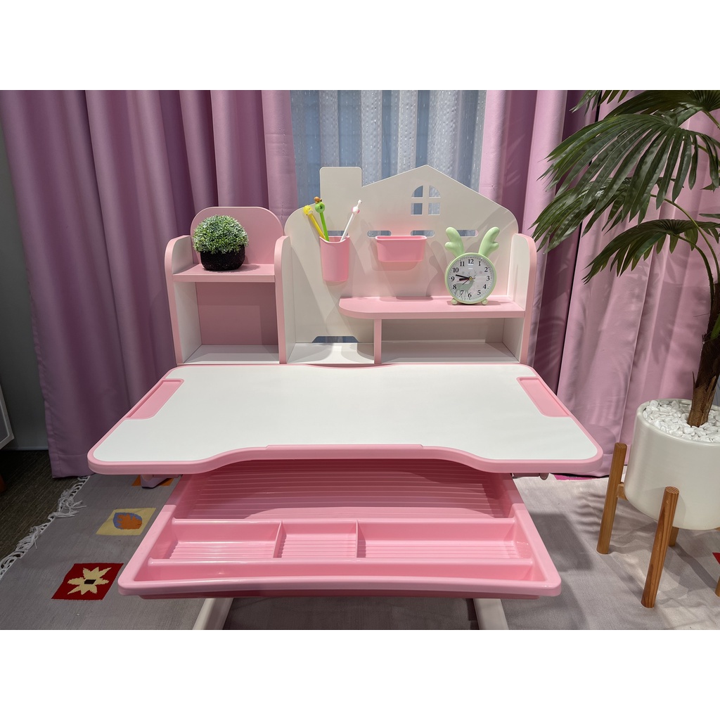 Điểm cộng của bàn D8s là được trang bị thêm giá sách nhiều ngăn, giá để bút cùng ngăn kéo đa chức năng. Nhờ đó, bé có thể sắp xếp đồ dùng học tập một cách khoa học với nhiều khu vực để đồ được phân chia rõ ràng, tiện lợi.