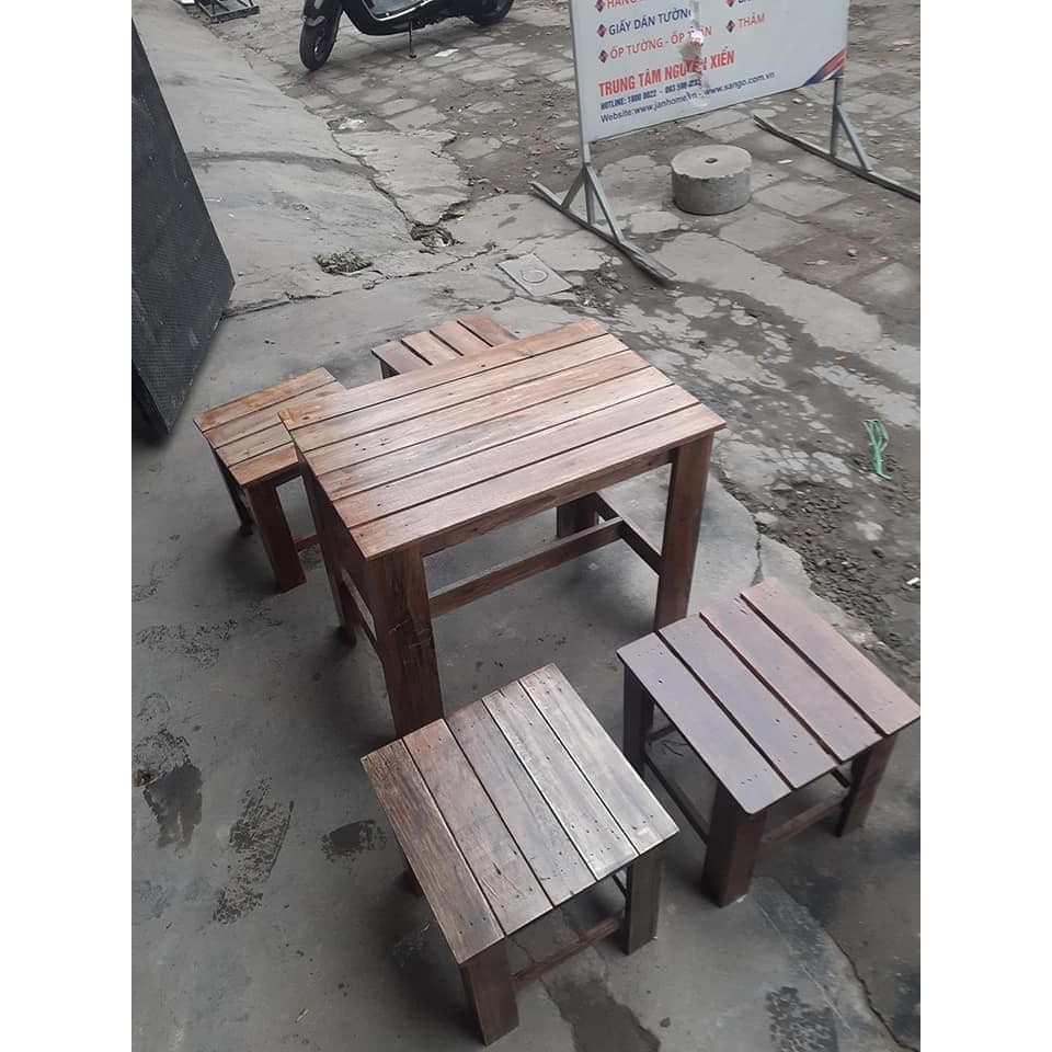Bàn ghế hồng kong quán cafe HPCF 07, bàn ghế gỗ quán vỉa hè quán cóc ( Bộ ko Tựa )