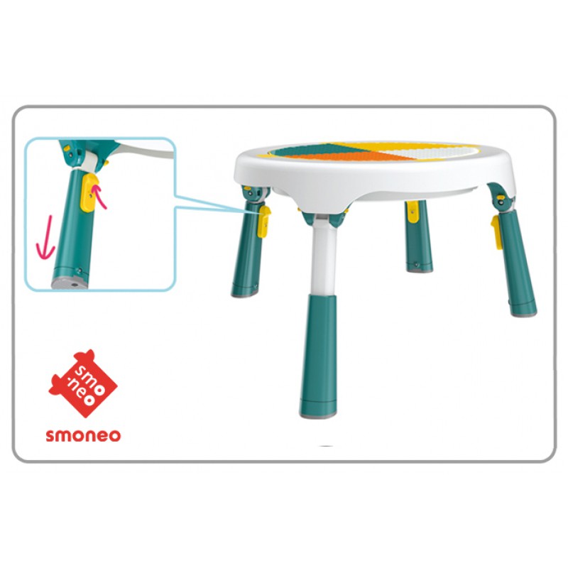 Chân bàn được làm bằng nhựa ABS cao cấp, không chưa chất BPA và không làm từ sắt không rỉ set, không nguy hại tới bé. Chân bàn có thể điều chỉnh 03 mức độ cao với mức thường là 24cm, 28cm và 32cm, phù hợp với nhiều dai đoạn của trẻ