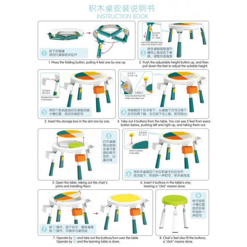 Bộ bàn ghế lắp ghép đa năng - 88005 được thiết kế theo chuẩn châu Âu, đa năng với nhiều mục đích sử dụng. Bàn được thiết kế bằng chất liệu nhữa ABS cao cấp, không chưa BPA không chất độc hại gây tác động tới sức khỏe và cơ thể của bé. Bộ bàn ghế với chuẩn đa năng nhiều công dụng, và mục đích sử dụng phù hợp với bé từ 3-6 tuổi.Bộ sản phẩm gồm: