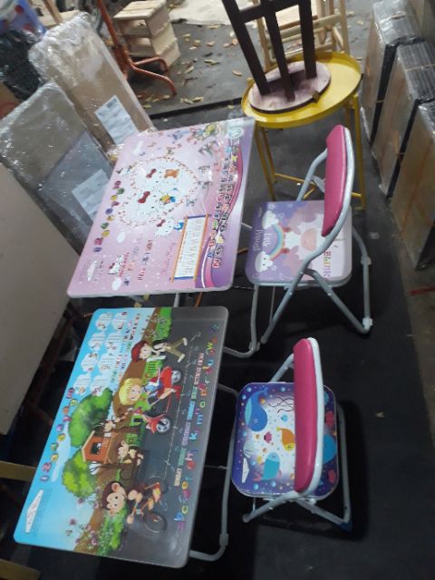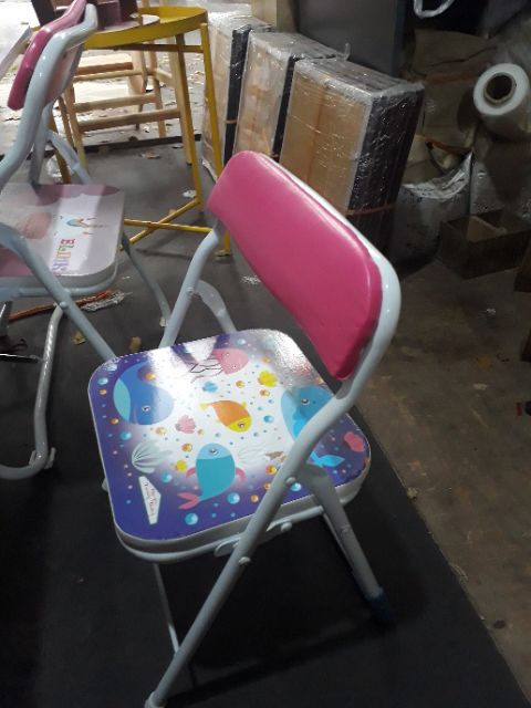 Bàn ghế mầm non gấp gọnChất liệu: khung sắt sơn tĩnh điện. mặt bàn + mặt ghế gỗ công nghiệp phủ họa tiết đáng yêu cho bé. Đệm tựa lưng ghế có mút được bọc bằng da chống đau lưng