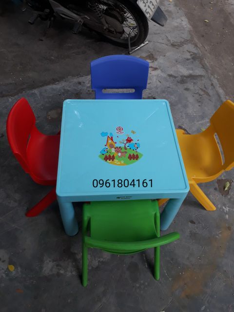 Bộ bàn ghế mầm non mặt vuông 60 cao 50Chân bàn có thể tháo rời