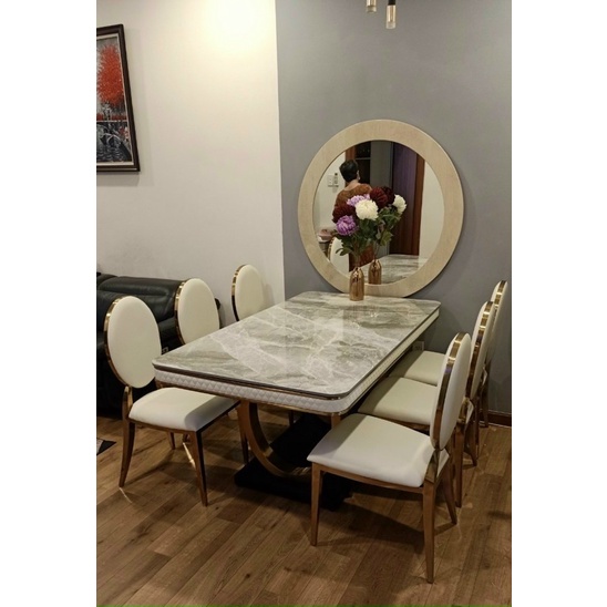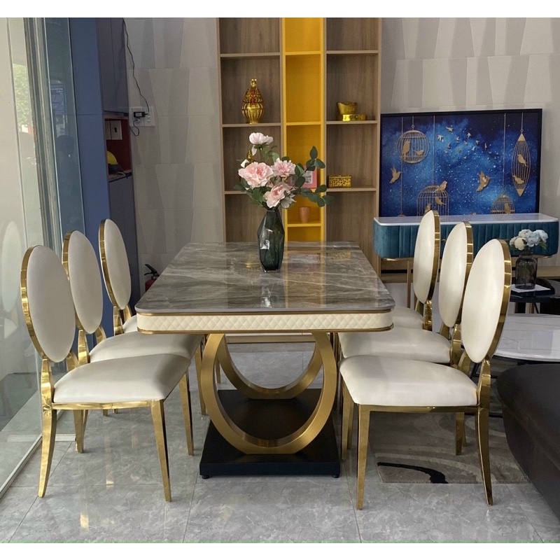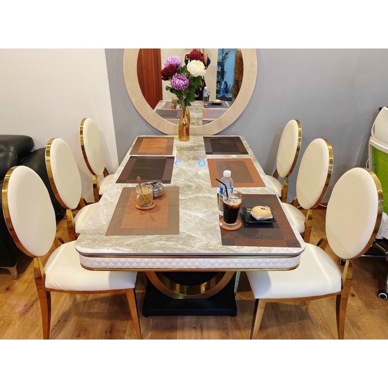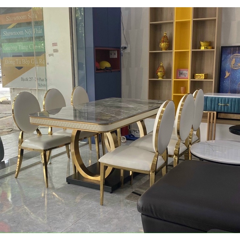 * Chất liệu: hàng nhập nguyên kiện, bàn mặt đá, ghê bọc da