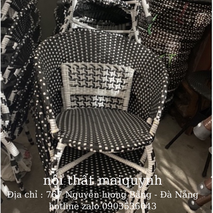 bàn ghế nhựa giả mây cà phê nhà hàngchất liệu khung sắt nhựa đan