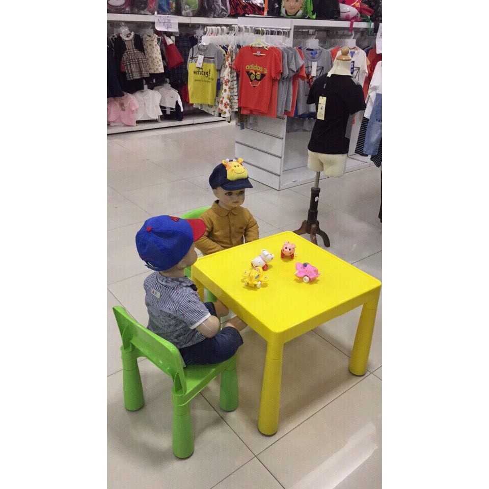 - Bao gồm 1 bàn và 1 ghế được làm từ nhựa nguyên sinh nhập khẩu cực kỳ an toàn cho bé khi sử dụng.