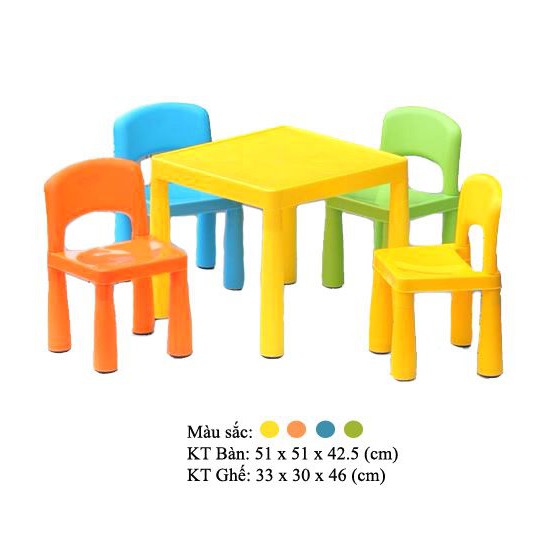 Bộ bàn ghế nhựa mẫu vuông Song Long (1 bàn + 1 ghế)(nhắn tin chọn màu)