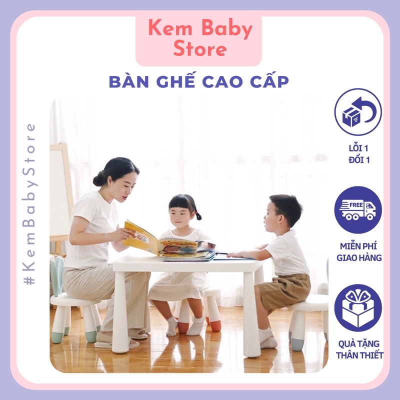 Bộ bàn ghế tai thỏ trẻ em cao cấp phù hợp trẻ em 2-10 tuổi, Tặng Đệm Nâng Độ Cao