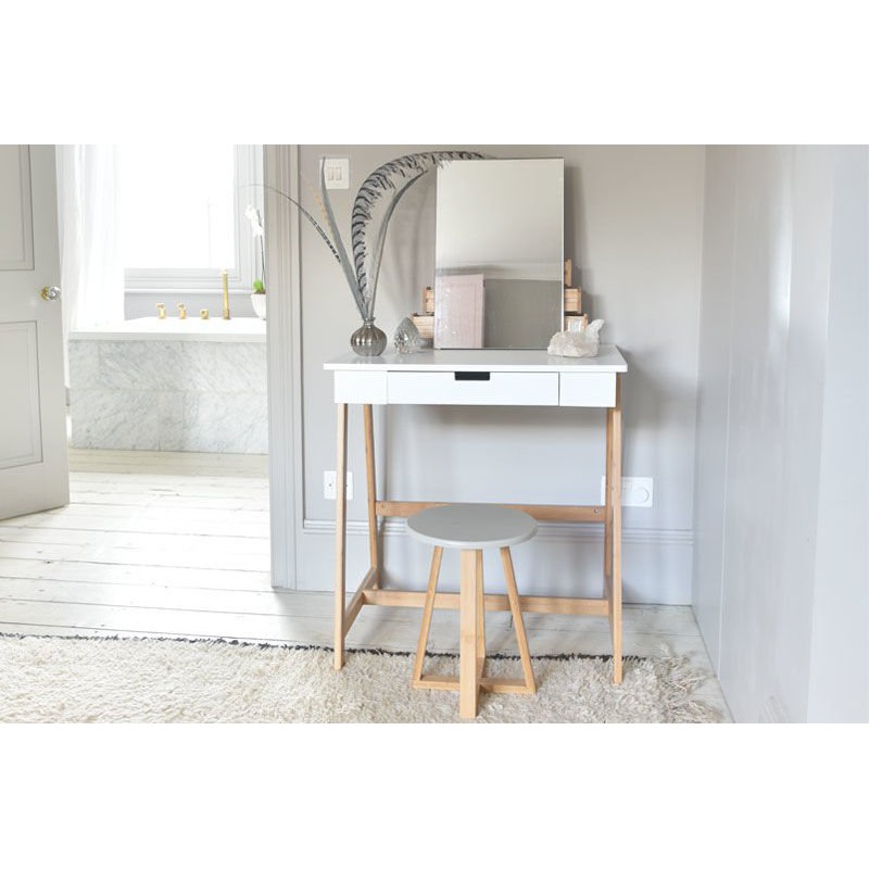Bộ bàn ghế trang điểm theo phong cách hiện đại, trẻ trung phù hợp cho các bạn trẻ.