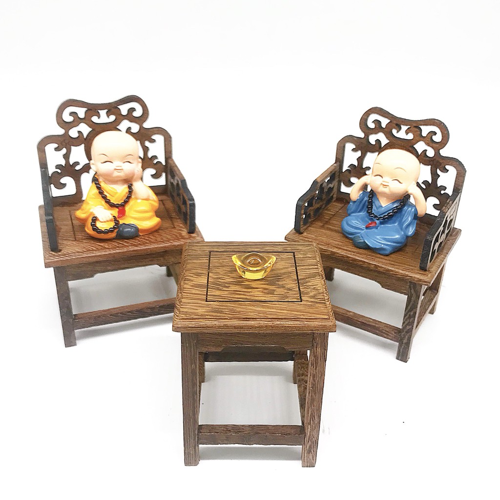 Tên sản phẩm: Bộ bàn ghế trang trí tiểu cảnh, để chú tiểu phong thủy ngồi,...Kích thước: