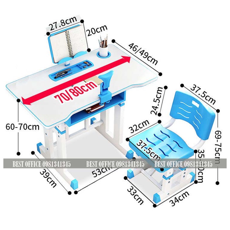 - Bàn và ghế đều có cơ chế tăng giảm độ cao