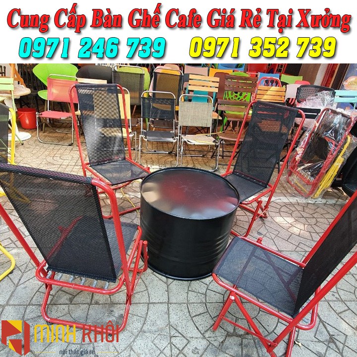 Bàn ghế xếp cafe ngoài trời, ghế lò xo giá rẻ