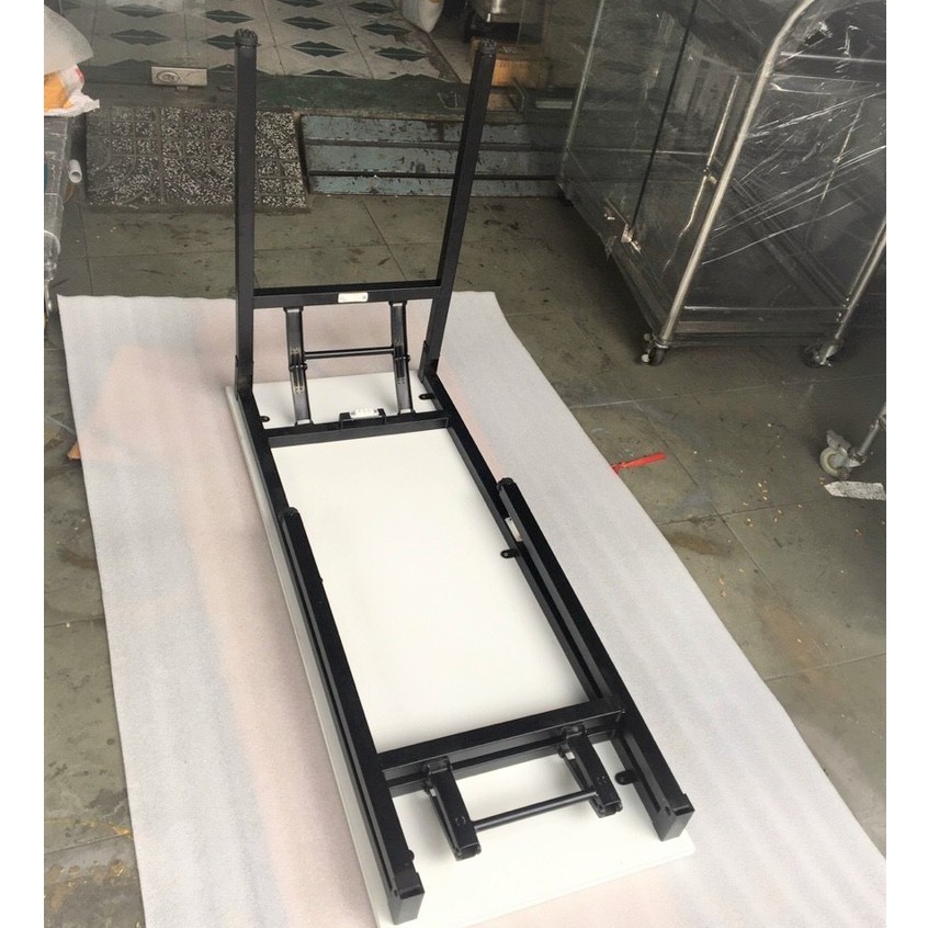 * Chất liệu: gỗ MDF, chân gấp lò xo cứng cáp, sắt sơn tĩnh điện, ống sắt vuông 30x30