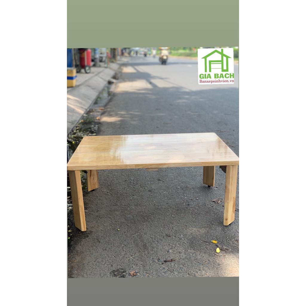 Mô tả sản phẩm: Mặt bàn và chân bàn làm bằng chất liệu gỗ cao su tự nhiên, có bảng lề gấp chân dễ dàng, chân có cao su chống trầy nền nhà.