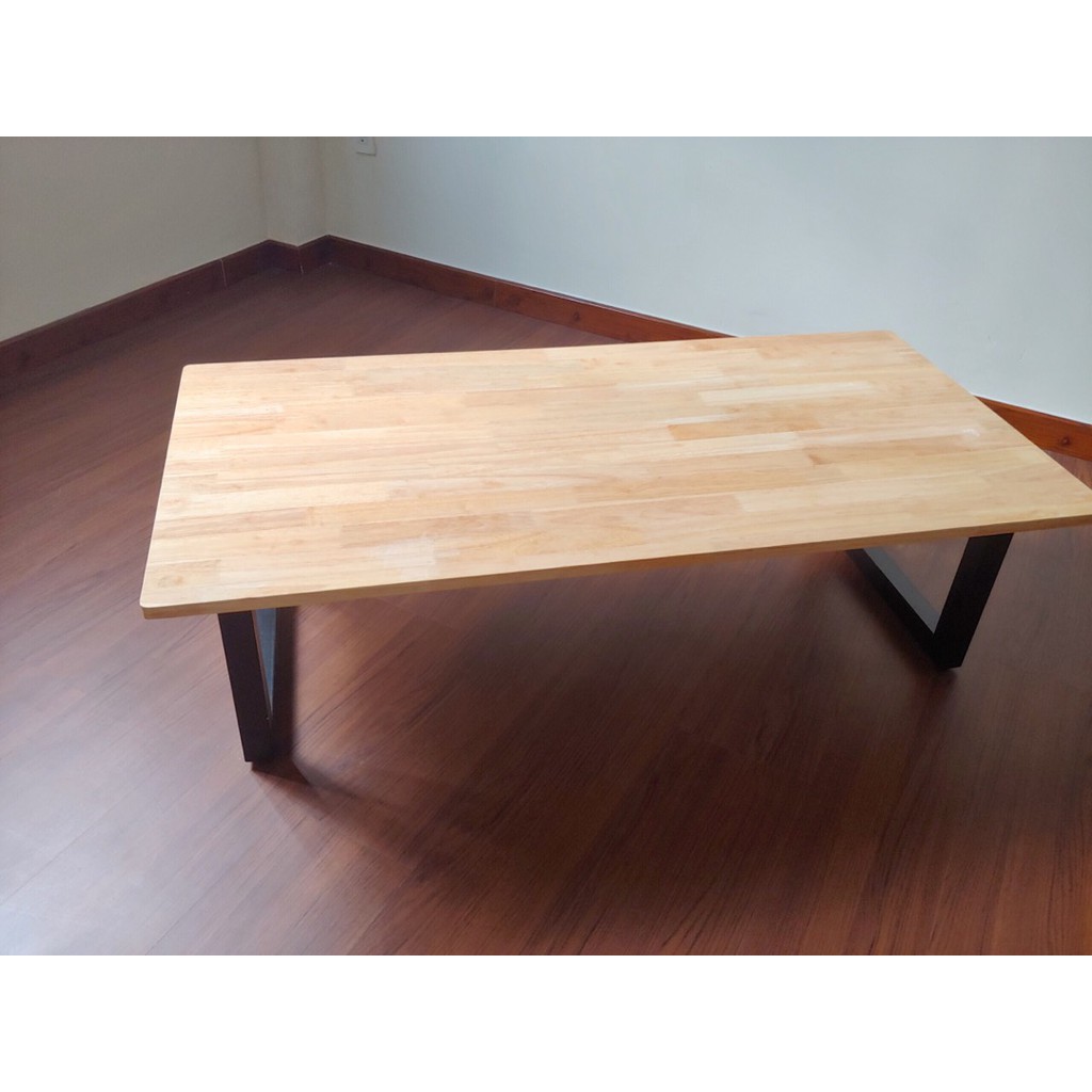 Mặt bàn: Làm từ gỗ cao su ghép thanh, dày 18mm, Phủ keo chống thấm nước 2 mặt, Bề mặt có lớp keo bảo vệ lõi gỗ, Không dính bụi bẩn. Cạnh bàn đã gia công xử lý láng mịn, Sơn PU lót.