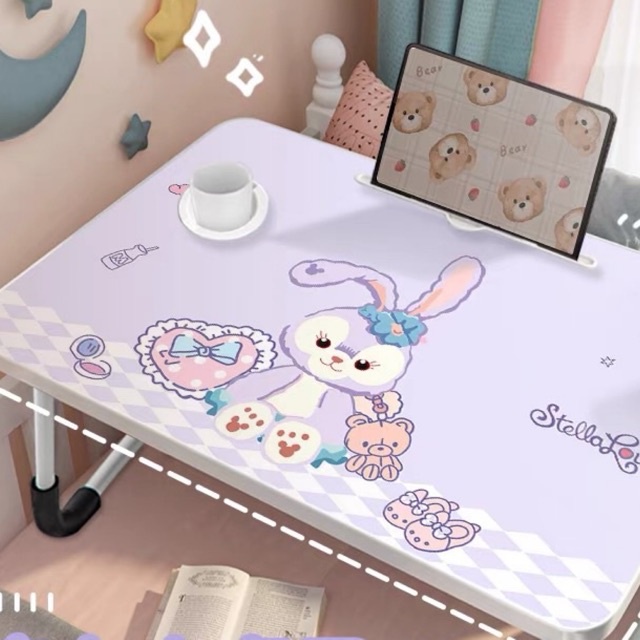 Mặt bàn chất liệu gỗ vẽ hình 3D rất đẹp, có khe để ipad đứng