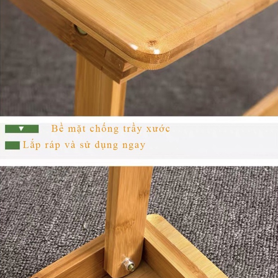 - Với chất liệu gỗ thông tự nhiên, bền đẹp thân thiện với môi trường, các góc cạnh cạnh được gia công kỹ lưỡng, bề mặt nhẵn bóng tạo tính thẩm mỹ cao, chân bàn chắc chắn có thể xếp lại gọn khi không sử dụng đến, tiết kiệm diện tích nên rất tiện ích trong những sinh hoạt thường nhật của gia định bạn như: uống trà, dung cơm, học tập, để laptop, đồ dùng, coffee.