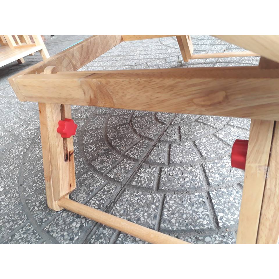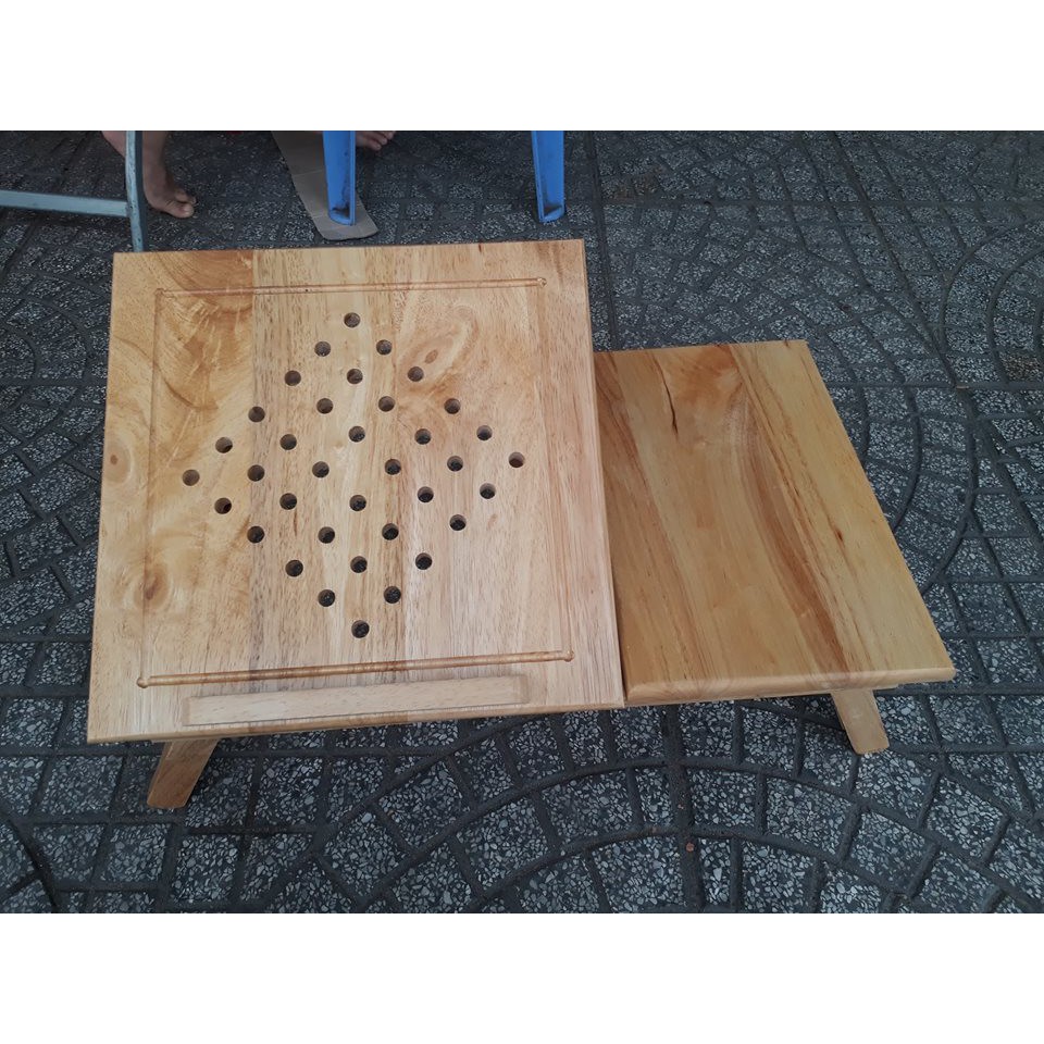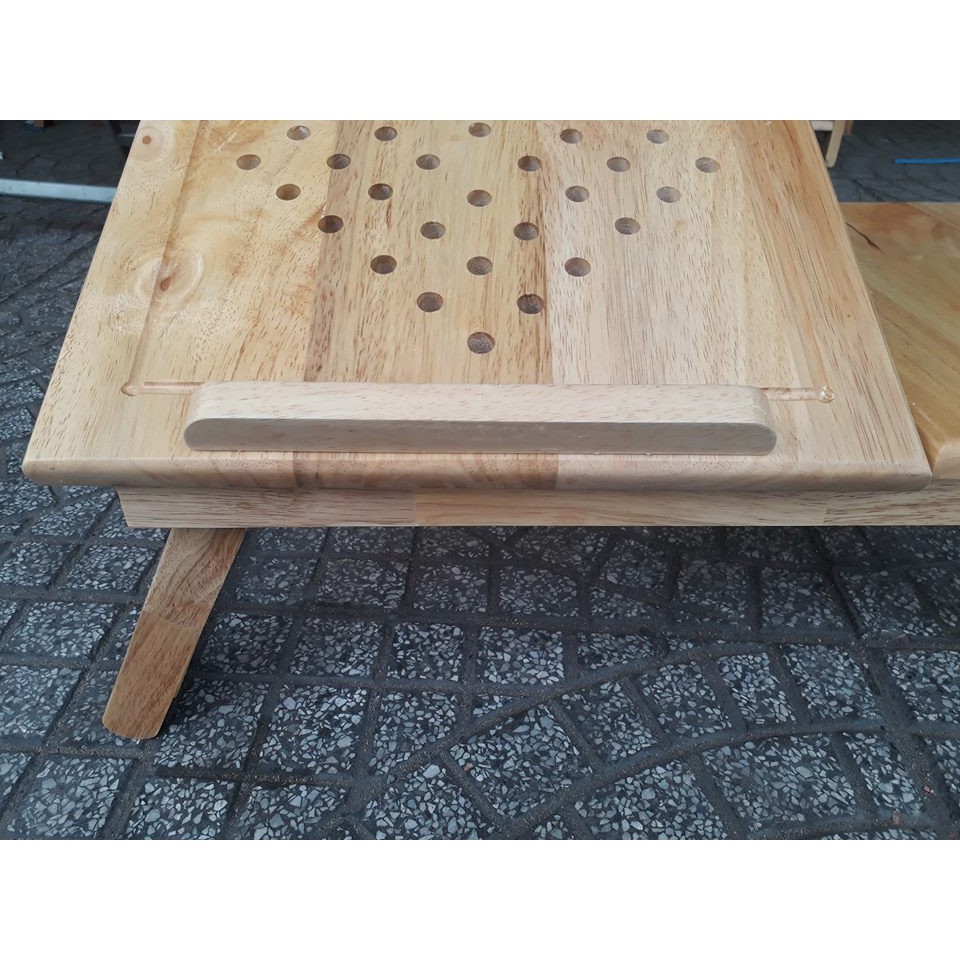 Bàn để laptop được làm bằng gỗ cao su xử lý chống mối mọt. Bàn có kích thước 54 x 33cm. Phần mặt nghiên là 33 x 33cm. phần cố định là 21 x 33. Có 2 chốt đỏ để nâng chân bàn cao lên ( khi chưa nâng chiều cao 21m, nâng lên là 25cm. Với bàn để laptop này Quý khách có thể vừa nằm vừa sử dụng laptop, phía trước mặt bàn có thanh chắn giúp cho laptop không tuột xuống. Phía mặt bàn có lỗ giúp laptop tản nhiệt. Bàn có 3 màu : màu gỗ cao su ( như hình). vàng và nâu.Ngoài ra, chúng tôi chuyên cung cấp kệ sách. Kệ có từ 3 - 4 -5 tầng . Ngang từ 40 -50 -60 -80 - 90 - 100cm. Tùy theo nhu cầu và không gian nhà, Quý khách chọn số tầng và chiều ngang cho phù hợp. (3 - 4 - 5) x (40 - 50 - 60 - 80 - 90 - 100).