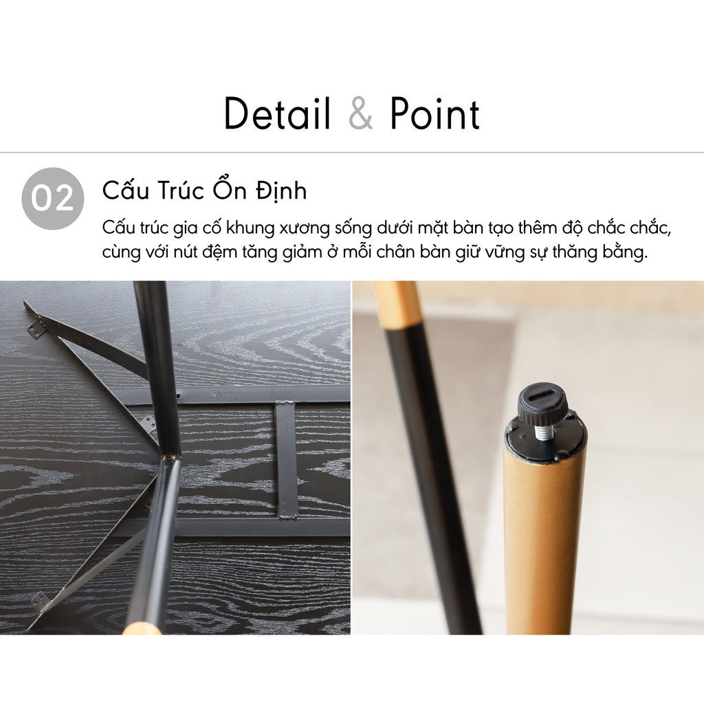 - Màu sắc: + Mặt bàn đen - chân trắng