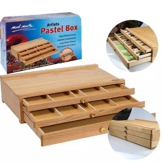 Giới thiệu Bàn gỗ kê giấy vẽ có 3 ngăn kéo đựng bút, giấy, cọ hãng Mont Marte
