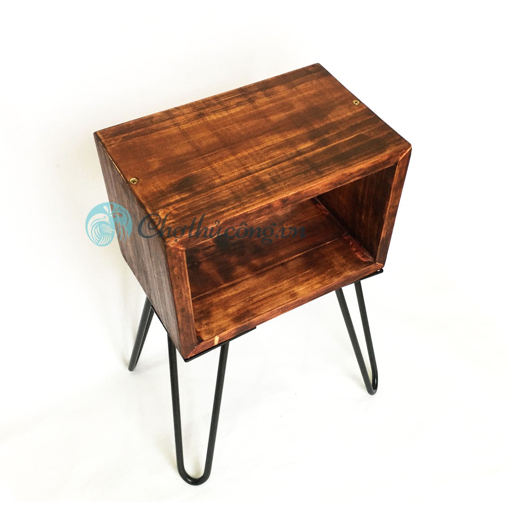 Bàn gỗ thông kê đầu giường decor bàn trà D30xR20xC50cm, 4 chân sắt (gỗ thô hoặc chọn 5 màu sơn vintage cổ điển)