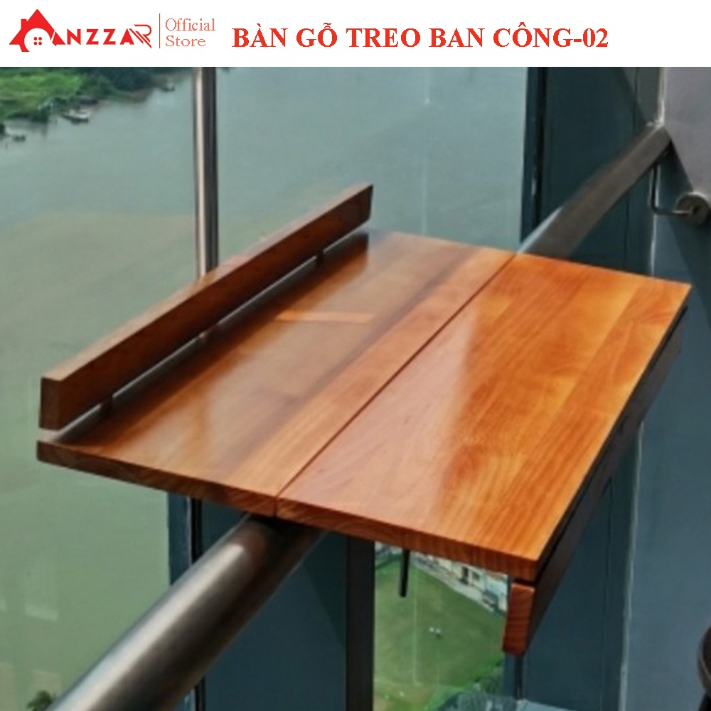 Bàn gỗ treo ban công Anzzar nhiều kích thước gỗ thông nhập khẩu dùng làm việc, học tập, làm bàn trà BBC-02