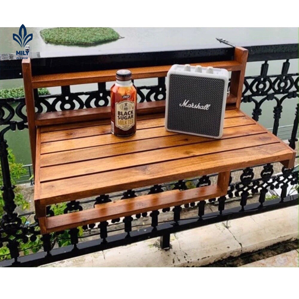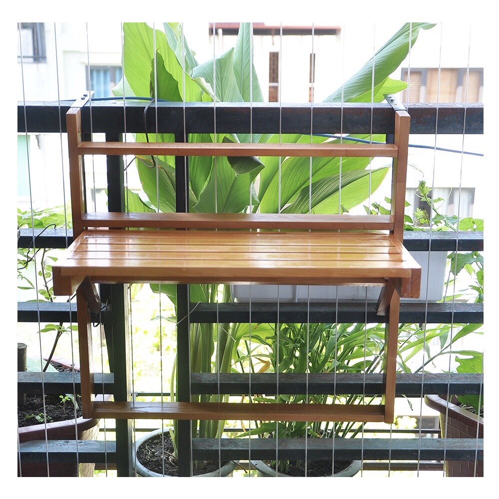 Bàn gỗ treo ban công gấp gọn loại đẹp có thể điều chỉnh độ cao. Bàn ban công dài 56cm được làm từ gỗ thông nhập khẩu cực kỳ bền đẹp, chắc chắn. Bàn được xử lý kỹ lưỡng, chịu được thời tiết mưa nắng, bền bỉ với thời gian. Bàn treo ban công là ý tưởng tuyệt vời để bạn thưởng thức cafe, ngồi hóng gió hoặc làm việc hiệu quả.MÔ TẢ SẢN PHẨM: