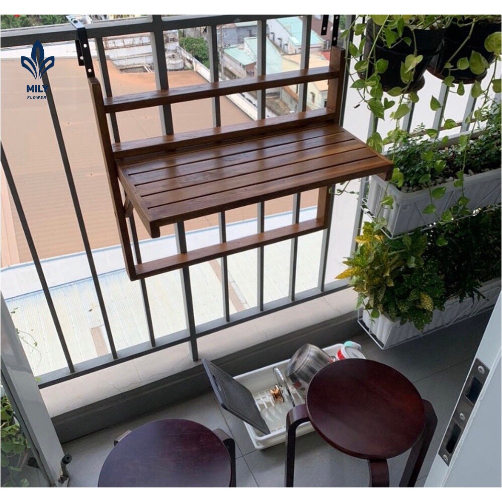 Giới thiệu Bàn gỗ treo ban công gấp gọn loại đẹp - Bàn ban công có thể điều chỉnh độ cao