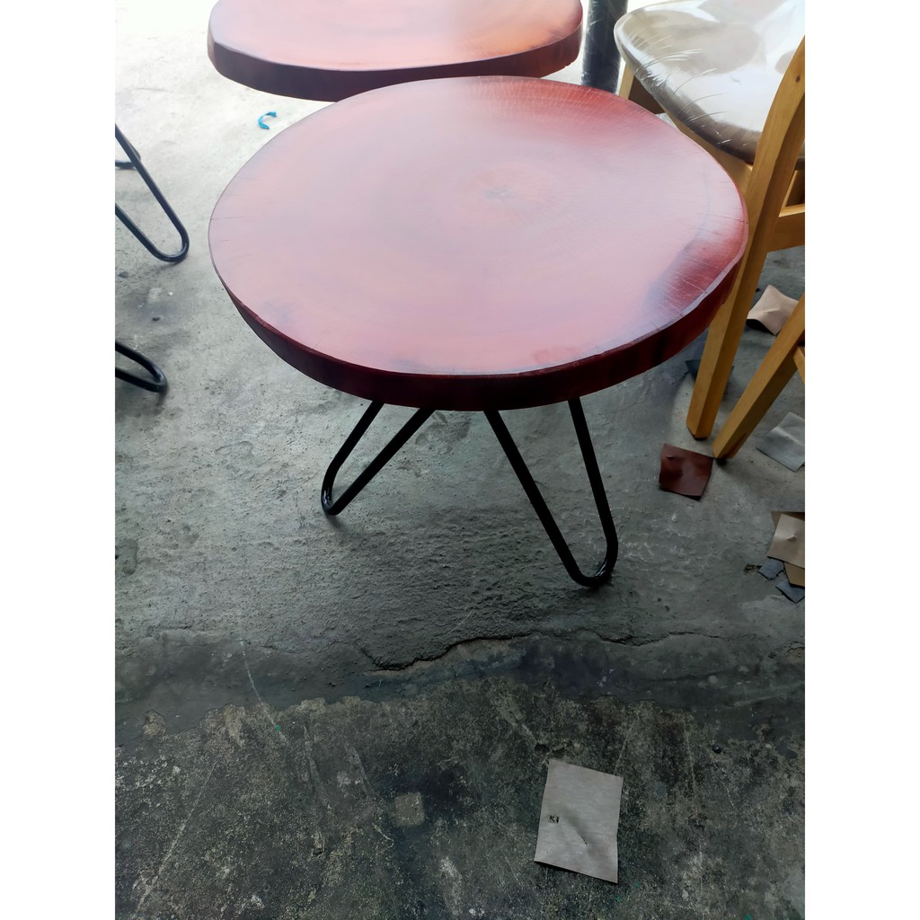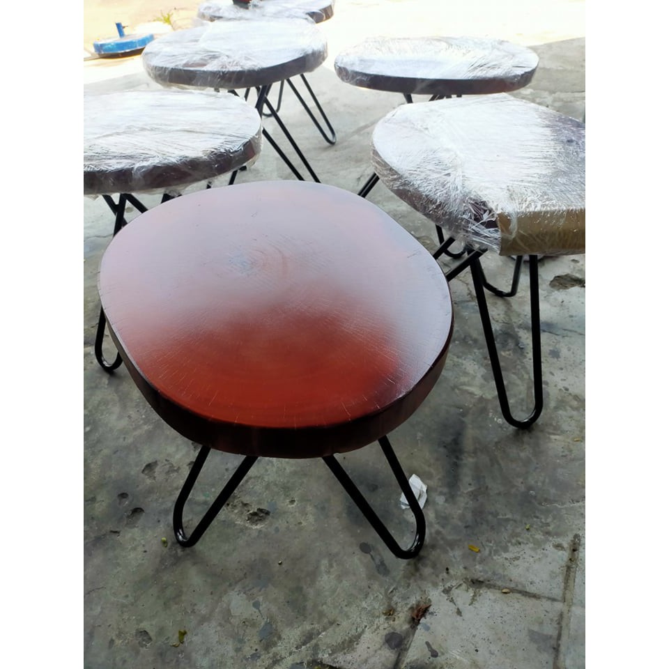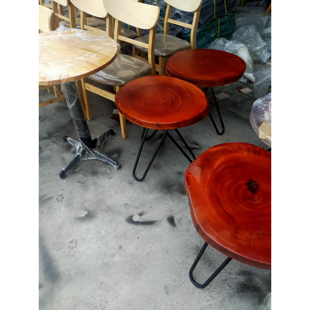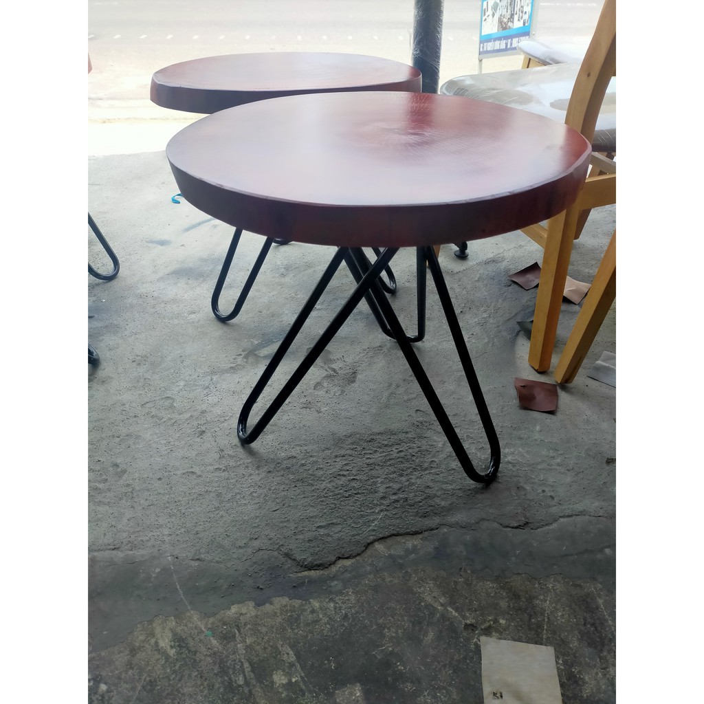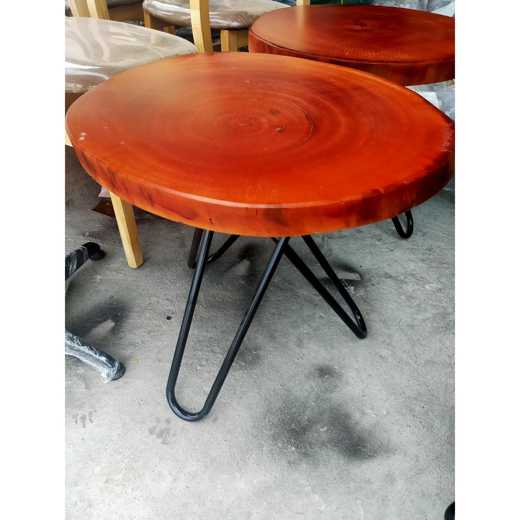 1. kích thước : Đường kính mặt bàn 50cm - 60cm, nguyên hình thân gỗ. dày 5cm. chân cao 55cm