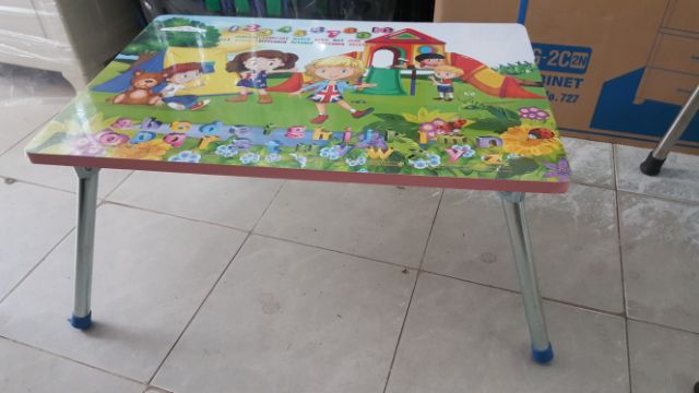 Bàn học sinh xếp mặt ép hình và bọc dành cho bé viết bài hay để laptop làm việc đều đượcBàn được xếp gọn có thể đi du lịch hay để đồ thoải mái.