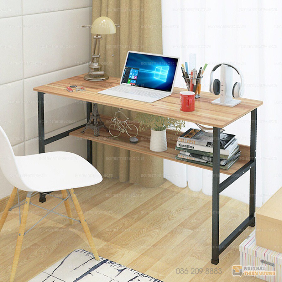 Nhà cửa & Đời sống > Nội thất > Bàn || Bàn Học, Bàn Làm Việc Có Kệ Lửng, Khung Thép Đen Tĩnh Điện, Mặt GỗCòn hàng