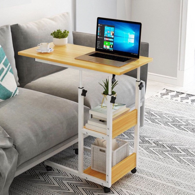 Bàn học, bàn làm việc đa năng để cạnh giường có giá sách và di chuyển dễ dàng