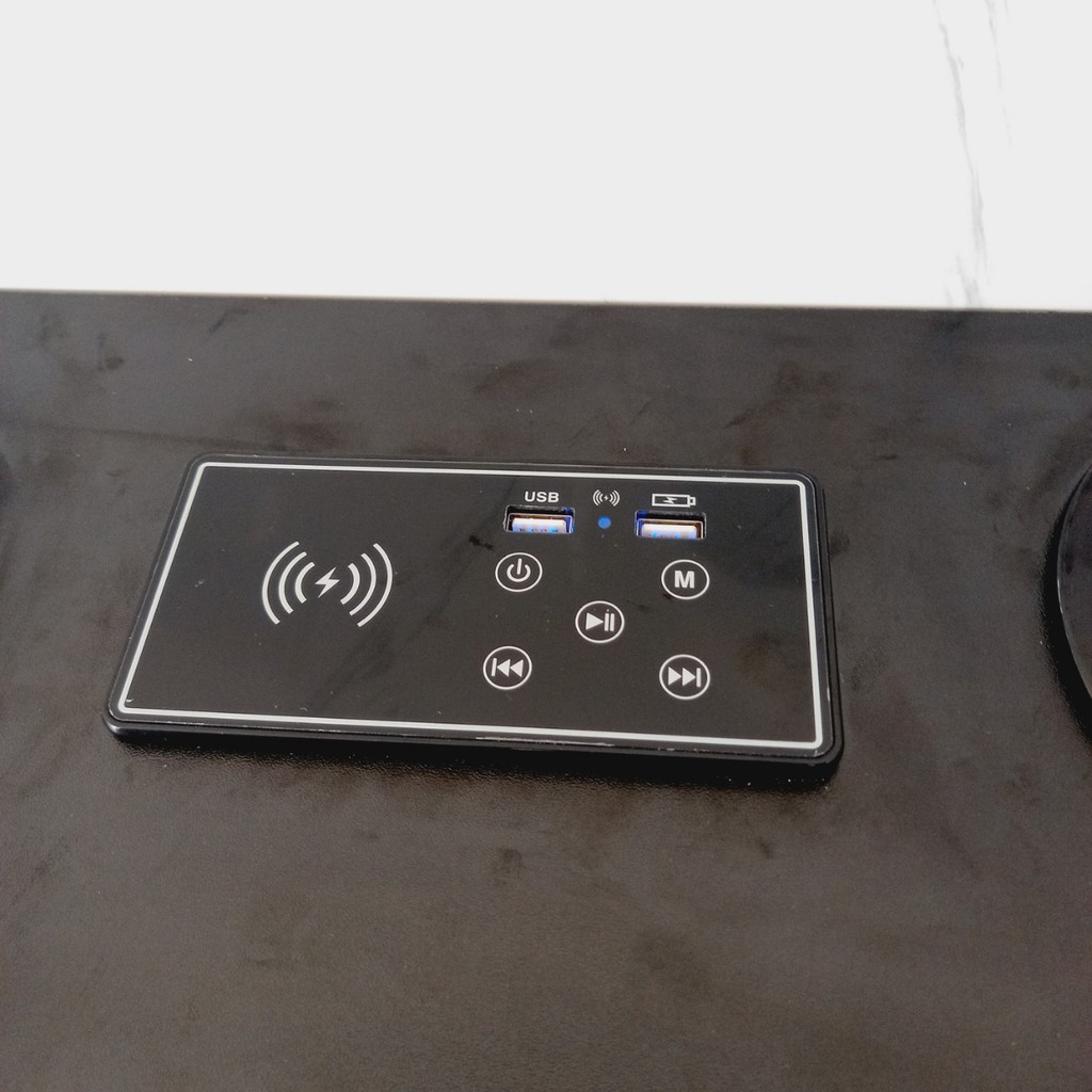 - Bàn làm việc được tích hợp cổng sạc 1 cổng sạc USB 5V2A, sạc không dây giúp thuận tiện cho việc sạc điện thoại và hệ thống 2 loa kết nối bluetooth từ các thiết bị như (điện thoại, máy tính bảng...).Thiết bị có hỗ trợ phát nhạc trực tiếp từ USB và có nút điều chỉnh chọn bài hài kế tiếp, phát nhạc với âm thanh trầm ấm giúp cho bạn thư giản trong những lúc mệt mỏi.