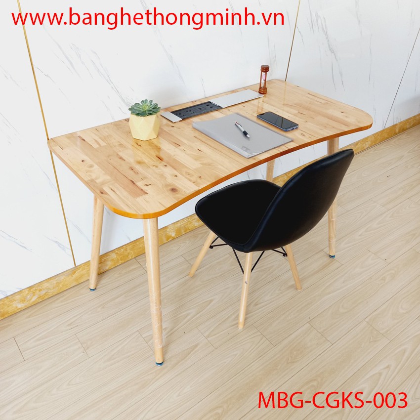 - Tên sản phẩm: Bàn mặt gỗ MDF + chân gỗ cao su khung sắt X tích hợp sạc USB & ổ cắm 220V