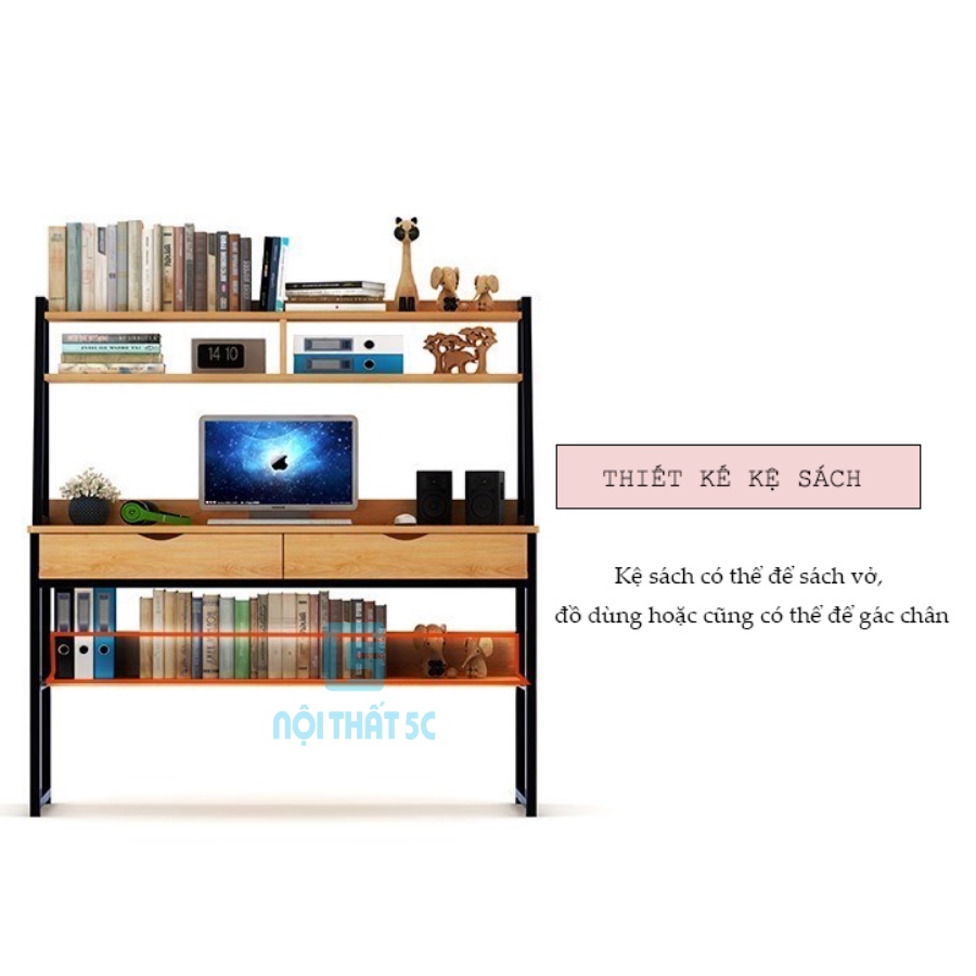 Bàn học, bàn làm việc màu vân gỗ kết hợp với giá sách tiện lợi, hiện đại có mặt bàn kích thước lớnNội thất 5C chuyên cung cấp các dòng sản phẩm nội thất đẹp, được lựa chọn kỹ càng với những thiết kế độc đáo, hợp với xu hướng, hứa hẹn mang lại một không gian sống tiện nghi và có điểm nhấn cho quý khách hàng.