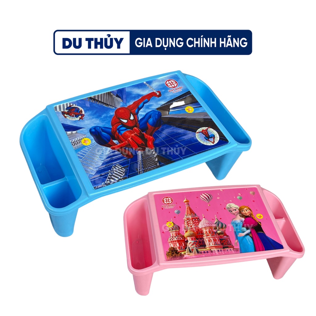 Bàn học bệt cho bé hình siêu nhân màu xanh, hình công chúa elsa màu hồng có ngăn chứa bút viết tập vở tiện lợi