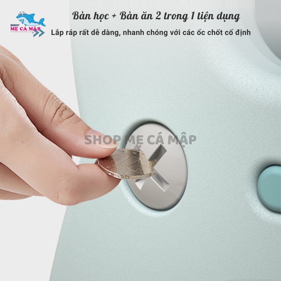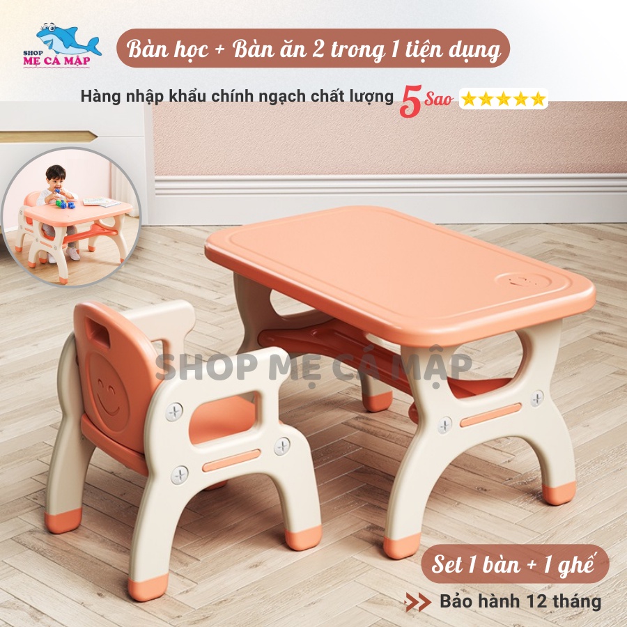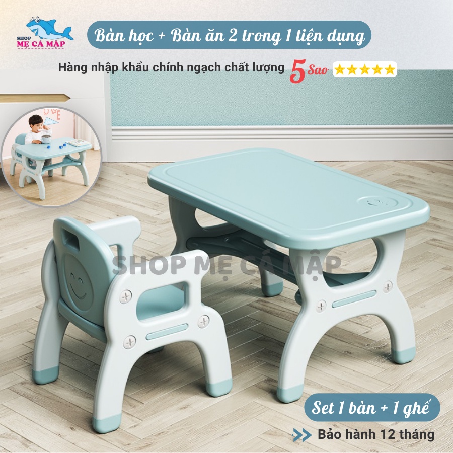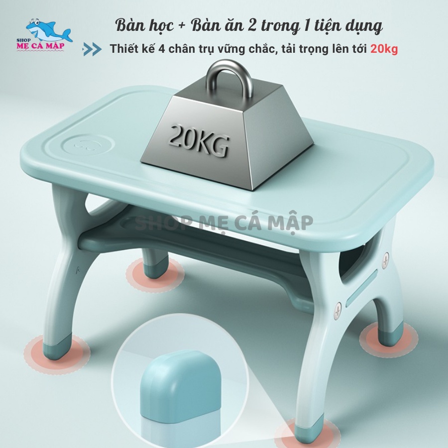 Bộ bàn học cho bé, Nhựa nguyên sinh cao cấp dày dặn chắc chắn, 2 in 1 làm bàn ăn
