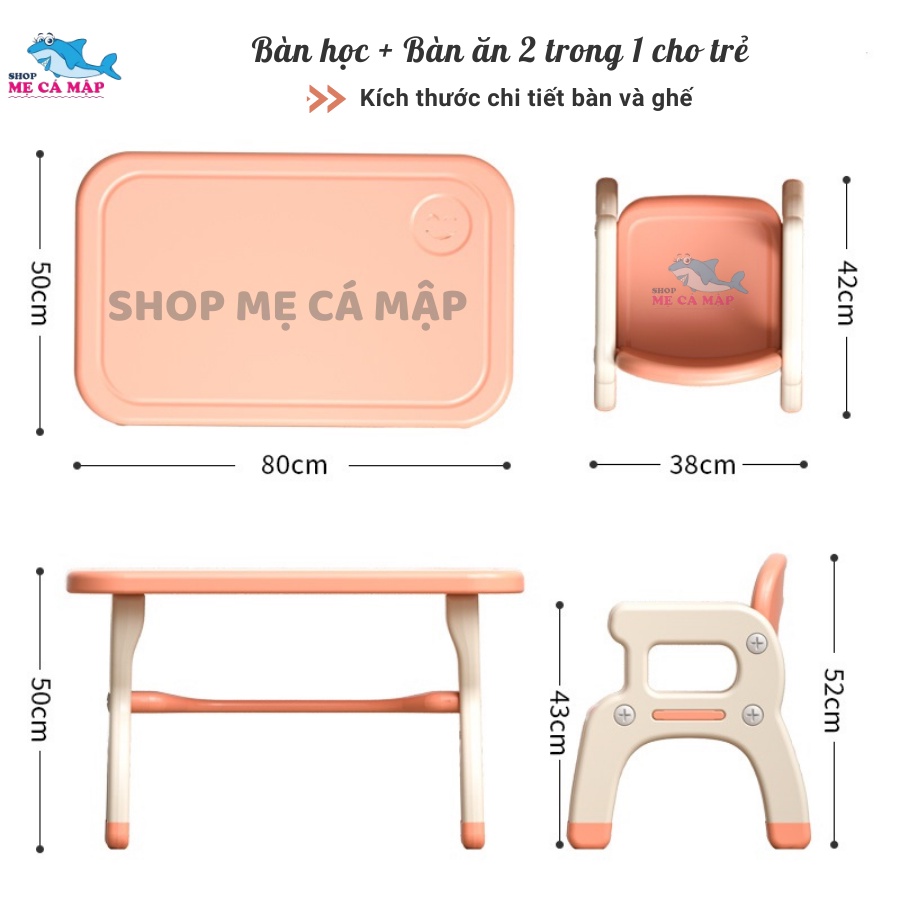 Nhà cửa & Đời sống > Nội thất > Bàn || Bộ bàn học cho bé, Nhựa nguyên sinh cao cấp dày dặn chắc chắn, 2 in 1 làm bàn ănCòn hàng