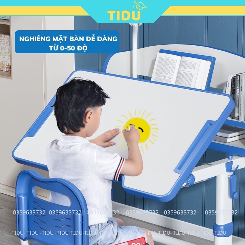 ✔ Chống cận thị, gù lưng do mặt bàn điều chỉnh góc nghiêng từ 0 đến 50 độ, tối ưu khoảng cách từ mắt trẻ tới mặt bàn. Bàn ghế có thể nâng lên hạ xuống, điều chỉnh nhiều góc độ khác nhau.